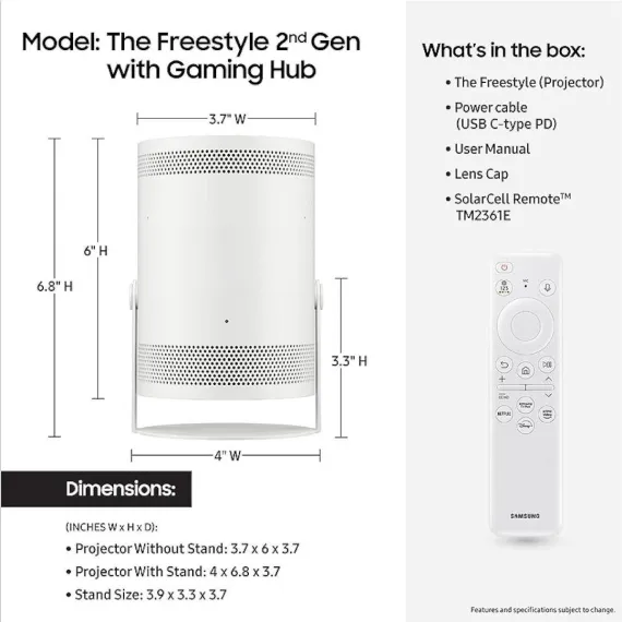 Take big-screen entertainment anywhere with The Freestyle 2nd Gen with Gaming Hub—a portable smart projector that sets up instantly and delivers stunning visuals in any space. Whether you’re watching movies, streaming shows, following workouts, or jumping into cloud gaming, The Freestyle brings a full theater experience wherever you go.