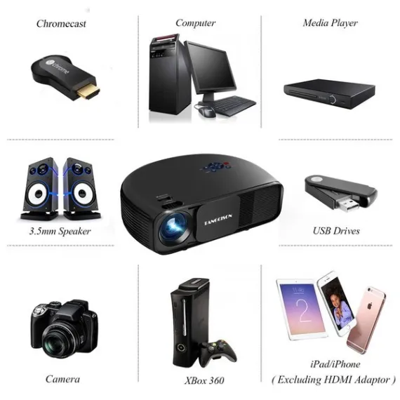 TANGCISON Home Projector, 3300 Lumens LED Video Projector with 150" Projection Size, Multimedia Portable Projector Support 1080P HDMI SD USB VGA AV for Home Cinema TV Game iPhone Andriod