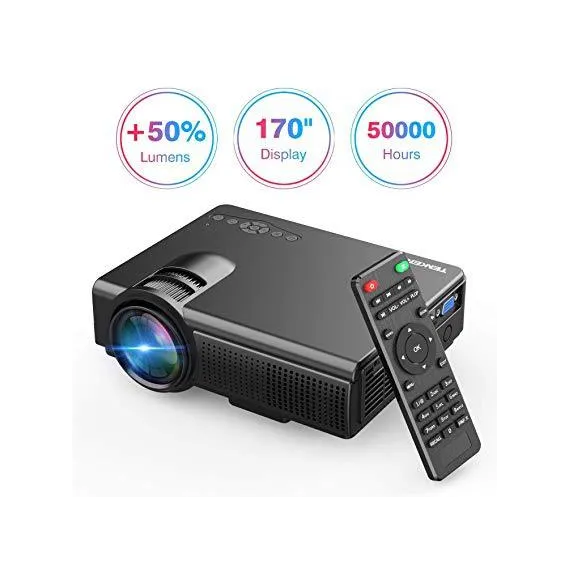 TENKER Upgrade Lumens Q5 Mini Projector, with Big Display LED Full HD Video Projector, Compatible with 1080P HDMI, Fire TV Stick, VGA, USB, AV for Home Theater Entertainment, Party and Games (Gary)
