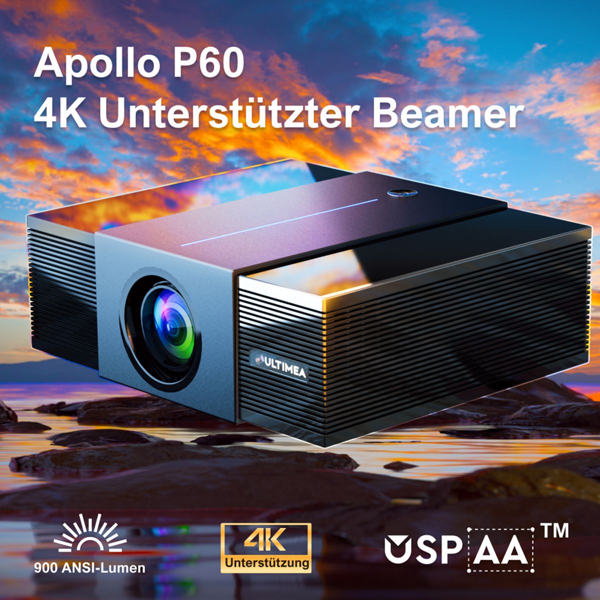 ULTIMEA 4K Projector,900 ANSI Lumens,Obstacle Avoidance,6D Keystone,Full HD Native 1080P,WiFi & Bluetooth,Apollo P60