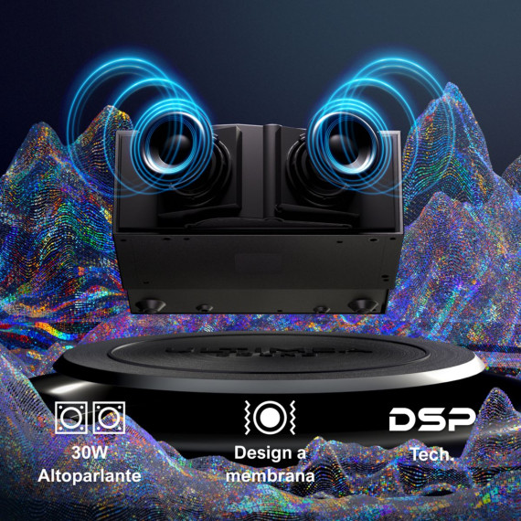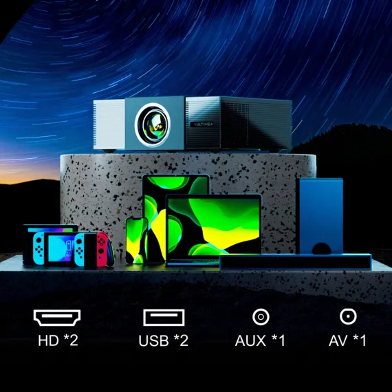 Featuring advanced optical design, a high-transflective mirror, and a 5-inch LTPS panel, this projector delivers 900 ANSI lumens and 90% brightness uniformity, ensuring every detail is crisp and vivid, even at the edges. With native 1080P resolution, 4K decoding, and HDR10 support, the Apollo P60 brings cinematic visuals to life. Enjoy immersive sound with dual 15W full-range drivers and an independent diaphragm system. With 30W of peak audio power and built-in Dolby support, the Apollo P60 ensures clear vocals, rich treble, and deep bass. Bidirectional Bluetooth 5.3 makes it easy to connect with ULTIMEA soundbars or use the projector as a standalone speaker.