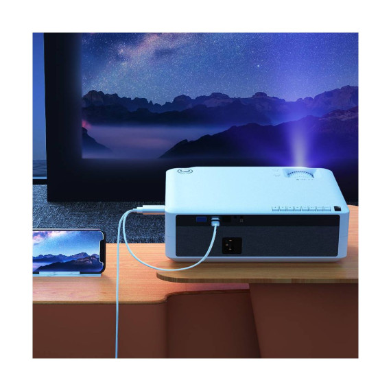 The VANKYO Performance V630W Projector features a native resolution of 1920 x 1080P and supports a mega screen size up to 300". Perfect for meetings, movies, and gaming, this 1080P projector offers seamless streaming and smooth visuals via Wi-Fi. It supports wireless mirroring for iOS/Android devices through 2.4G/5G Wi-Fi and can be easily mounted on the ceiling or wall. Compatible with a variety of devices, including Roku sticks, smartphones, tablets, laptops, and gaming consoles.