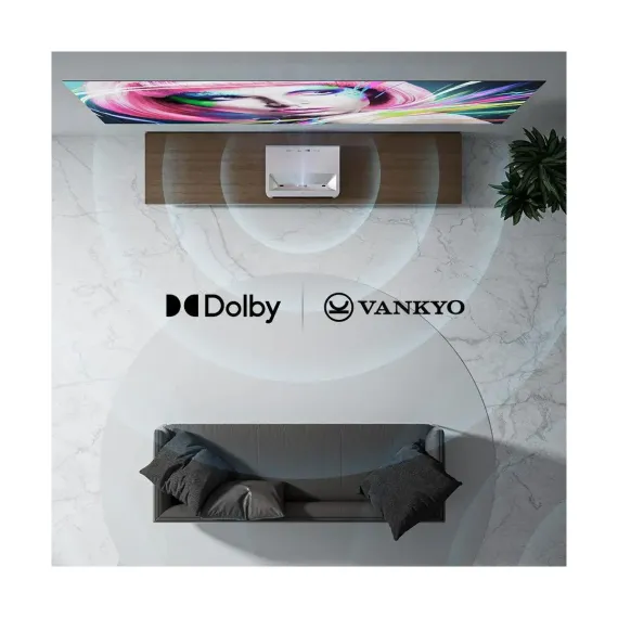 The Vankyo Vista T4 4K Ultra Short Throw Triple Laser Projector is equipped with a triple laser optical engine, reaches outstanding 1400 lumens, has a wide range of color coverage, and native 4K resolution! Featuring 0.233:1 throw ratio, which can project over 100" display while sitting just inches from a wall. Included is a 4K TV stick, giving access to a massive library of streaming contents including Netflix, Disney+, Prime Video and more. The built-in powerful 60W 2.2 speakers and Dolby Audio allows for an amazing sound experience.