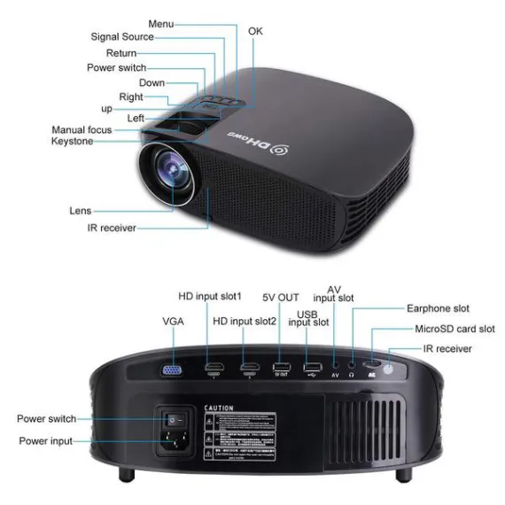 - 5.MULTI-MEDIA CONNECTION: Multiple inputs:HD*2/USB/VGA/SD/AV,outputs:Earphone USB(5V-500MA),you can connect to the device such as PS3, PS4, Xbox One, Xbox 360, Wii-U, PC, Headphone, Outer Speaker, U-disk, Hard disk to enjoy videos or movies. Support Multi-media: Music (MP3, WMA ,M4A, AAC, WAV), Picture, Video, TXT. Where you can use: Outdoor, office, home, KTV etc.