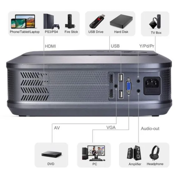 0:00 0:00 This video is not intended for all audiences. What date were you born? January February March April May June July August September October November December 1 2 3 4 5 6 7 8 9 10 11 12 13 14 15 16 17 18 19 20 21 22 23 24 25 26 27 28 29 30 31 2019 2018 2017 2016 2015 2014 2013 2012 2011 2010 2009 2008 2007 2006 2005 2004 2003 2002 2001 2000 1999 1998 1997 1996 1995 1994 1993 1992 1991 1990 1989 1988 1987 1986 1985 1984 1983 1982 1981 1980 1979 1978 1977 1976 1975 1974 1973 1972 1971 1970 1969 1968 1967 1966 1965 1964 1963 1962 1961 1960 1959 1958 1957 1956 1955 1954 1953 1952 1951 1950 1949 1948 1947 1946 1945 1944 1943 1942 1941 1940 1939 1938 1937 1936 1935 1934 1933 1932 1931 1930 1929 1928 1927 1926 1925 1924 1923 1922 1921 1920 1919 1918 1917 1916 1915 1914 1913 1912 1911 1910 1909 1908 1907 1906 1905 1904 1903 1902 1901 1900 Submit Adobe Flash Player is required to watch this video. Install Flash Player Im going to be honest. This is my first projector in this particular price range. Ive used the very cheap $60-$100 ones and of course the name brand $500+ ones youd find used for business and education. I was very impressed with how much better picture quality this projector presents then the cheaper ones Ive used and how close it gets in quality to the more expensive name brands. At 4500 Lumens, the picture is much brighter. You can actually read captions/subtitles and menus very very clearly so I would say it is perfect also for PowerPoint presentations! Ive included pictures of projector both in a completely dark room and dark a few with a dim light on so you can compare. A few of the pictures were taken with the projector closer to the wall (smaller picture, the one with the USB menu and Fox logo) and a few others with larger projection which didnt compromise picture. It has all the connections you might need in a projector (HDMI, VGA, USB, for speakers etc) so you can plug anything in it if you have the right cable. One thing I need to add that isnt a big deal but good to know is that you cannot plug in an Amazon Fire TV stick by itself as to the left of the HDMI port is slightly elevated body of the projector so you would have to plug it in with the HDMI extender adapter they come with (if you didnt lose it like I did) or use an HDMI switch which I happened to have on hand! Any HDMI "cable" plugs in just fine, its just the bulky stick by itself that cannot go in without its adapter. The built in speakers are nice and loud even at 100% very crisp and smooth sound. You can plug in speakers but if theres not a lot of loud background noise you probably dont need to as the built in would suffice. Let me explain the long projection range I mentioned in the review headline: if you place this projector next to a cheaper projector side by side about 10ft from a wall, this one would produce a smaller picture at the same range as a cheaper one but that just means the picture would be clearer at a longer range which is ideal especially for outdoor use or use in a large room. It is perfect for movie or video game nights! My setup is now complete!