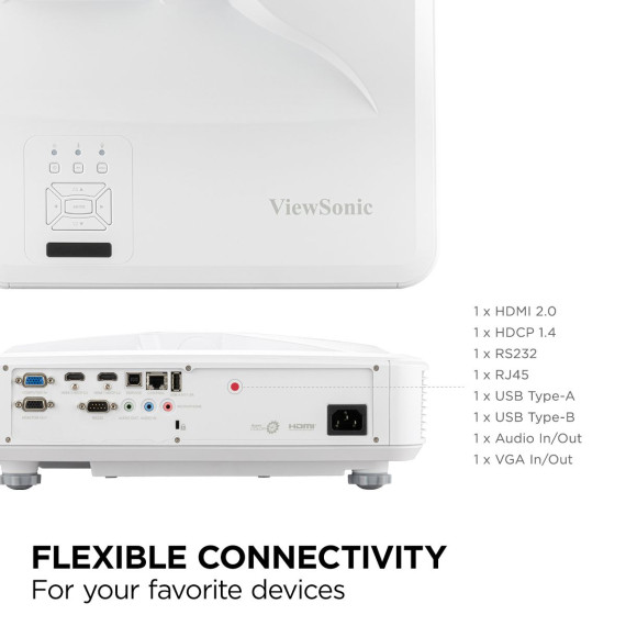 ViewSonic LS832WU 5000 Lumens WUXGA Ultra Short Throw Projector with 1.3 Optical Zoom, H/V Keystone, 4 Corner Adjustment, 360 Degrees Projection for