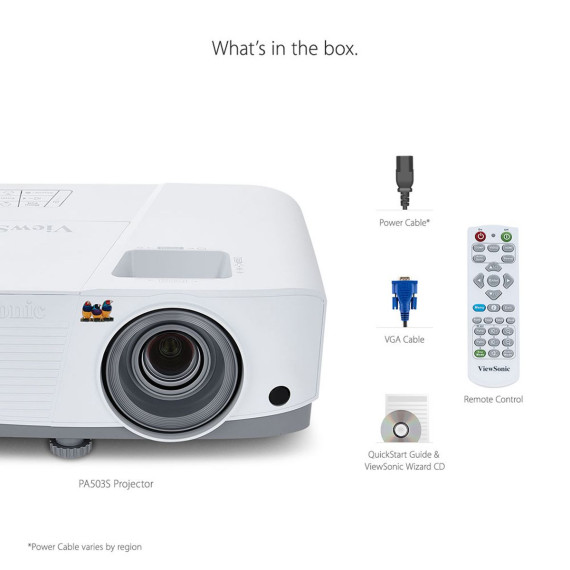 The ViewSonic PA503S price-performance projector features 4000 lumens, native SVGA 800 x 600 resolution, and intuitive, user-friendly design. Exclusive SuperColor technology offers a wide color gamut for beautiful image production in nearly any environment. The PA503S also features extensive connectivity including HDMI, 2 x VGA, VGA out, Composite Video and audio in/out. An energy-saving SuperEco feature reduces power consumption and extends the lamp life by up to 15,000 hours. With advanced audio-visual features, flexible connectivity options, and an affordable price, the PA503S is ideal for use in education and small business environments.