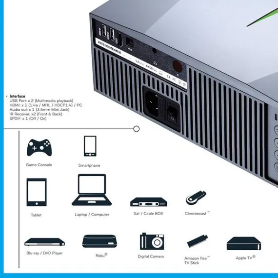 VIVIBRIGHT f40 Full HD Projector, Native 1920x1080DPI, E-Sports Class for Game and Home, 4200 White Light LED Brightness, HiFi Class Speaker with SPDIF