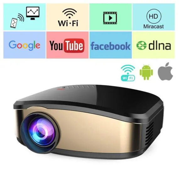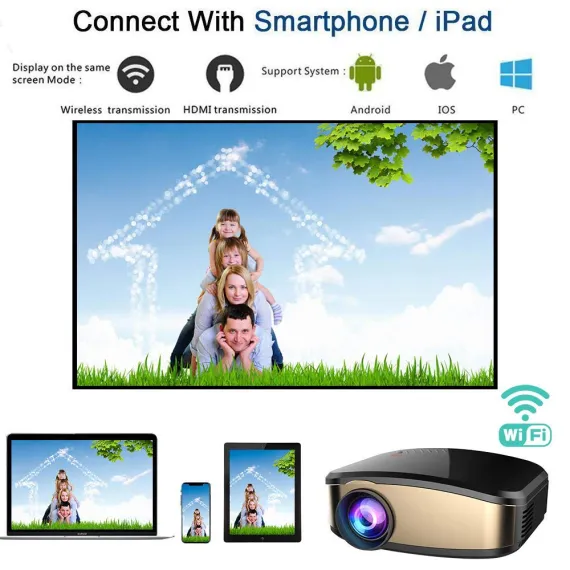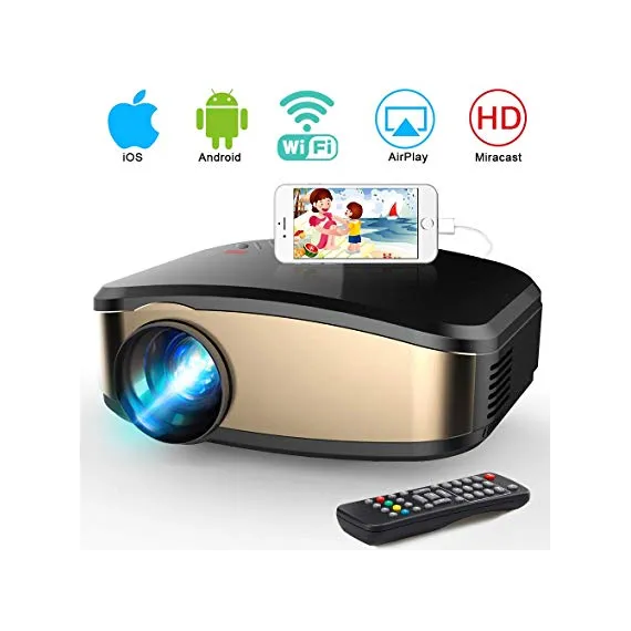 WiFi Projector, iBosi Cheng Portable Mini LCD Video Projector Full HD 1080P LED Home Theater Projector with HDMI/ USB/ VGA/ AV Input for Smartphones PC Laptop Gaming Devices