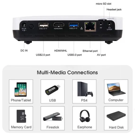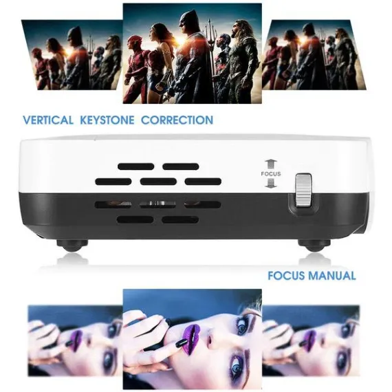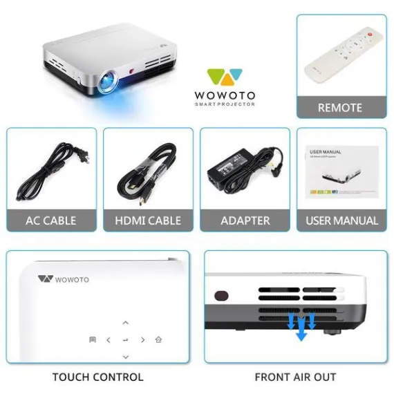 WOWOTO H8 3500 lumens Mini Projector White LED DLP 1280x800 Real Mini Home Theater Projector WXGA Support 3D 1080P HD Android HDMI USBx2 RJ45 176”± Perfect for Entertainment Business Wireless Screen