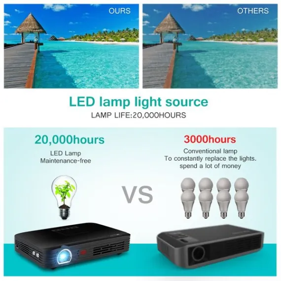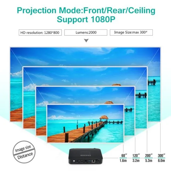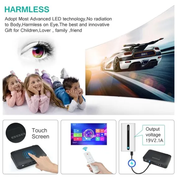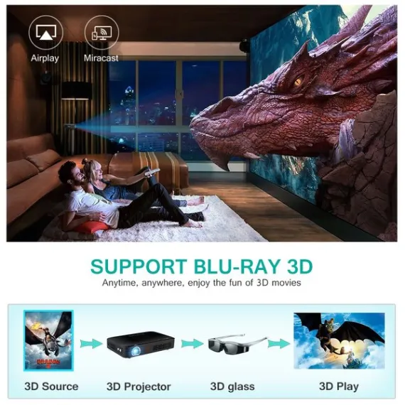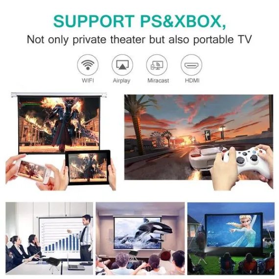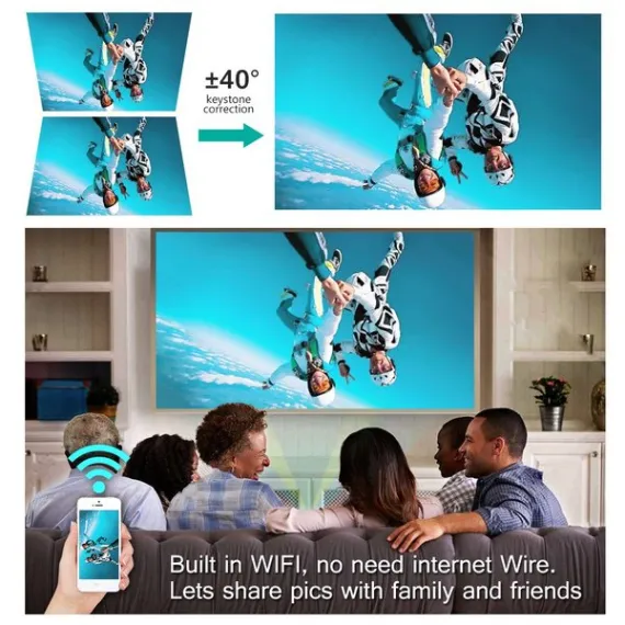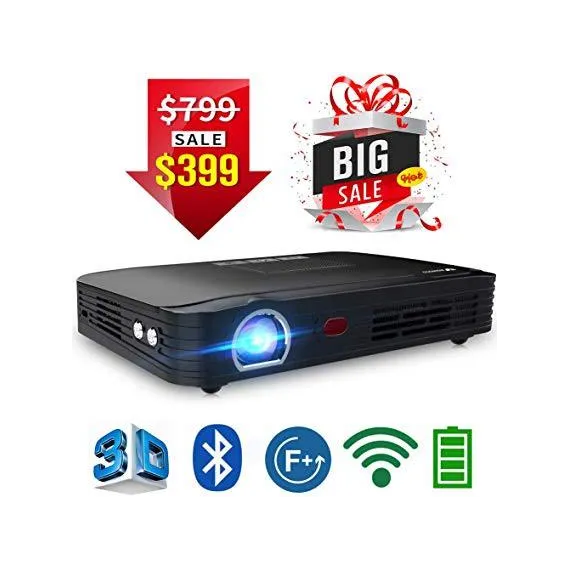 WOWOTO T8E Full HD Mini Portable Projector WiFi&Bluetooth Home Theater Projector Support 1080P Max300 DLP 3D Video Projector Built in Battery 7800mAh Android System for Gaming Business&Education