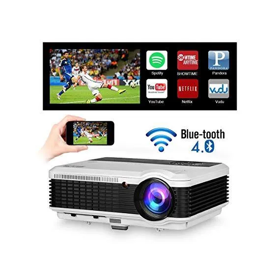 WXGA HD Wifi LED Home Cinema Theater Outdoor Movie Projector with HDMI USB Input Bluetooth LCD Smart Android Wireless Video Projector 1080P 720P for Laptop DVD TV XBOX Smartphone Slides Photo Game