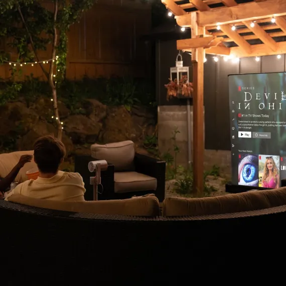 Unlock endless entertainment with the MoGo 3 Pro Bundle from XGIMI. Stream your favorite shows and blockbuster hits directly from Google TV™ and Netflix®, with access to over 10,000 apps and over 800 free channels, all without any installation hassle. Enjoy stunning, TV-quality visuals wherever you are, thanks to its 450 ISO Lumens brightness, 90% DCI-P3 color gamut, and 1080p resolution, projecting up to a massive 120-in. screen. The MoGo 3 Pro offers flexible usage with its 130° built-in stand and ISA 2.0, ensuring an automatically adjusted and ideally aligned image. Experience powerful audio with dual 5-watt Harman/Kardon® speakers, ideal for filling any room or party with immersive sound. Take your adventures further by connecting to the included PowerBase Stand for endless outdoor entertainment, with multiple input ports for seamless connectivity wherever you go.