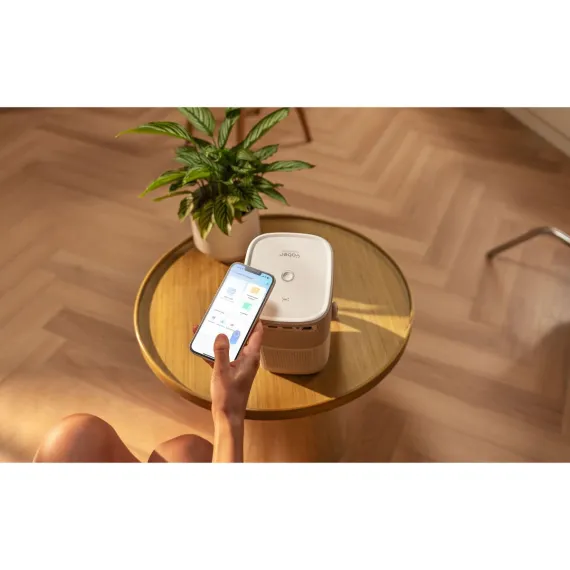 The Yaber T2 Plus Projector delivers an outstanding home theater experience with its 1080P FHD resolution and 350 ISO lumens brightness. Equipped with dual JBL speakers and Dolby Audio, it ensures immersive sound. The built-in battery provides 2.5 hours of video playtime. It features auto-focus, auto-keystone correction, and a handle-to-stand design for flexible use. Connectivity is seamless with HDMI, USB, Bluetooth 5.0, and Wi-Fi 6. Additionally, the T2 Plus includes a Google TV dongle, granting access to over 7,000 apps, including Netflix and YouTube.
