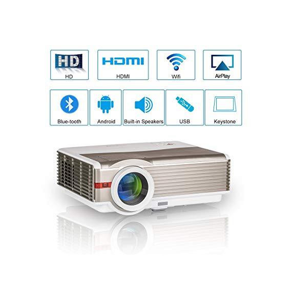 5000 Lumen WXGA Android LCD Smart HD Wireless Video Projector with Wifi Bluetooth,LED Home Theater Outdoor Movie Projector 1080P HDMI USB VGA AV Audio for iPhone iPad TV DVD XBOX PS4 Laptop Game