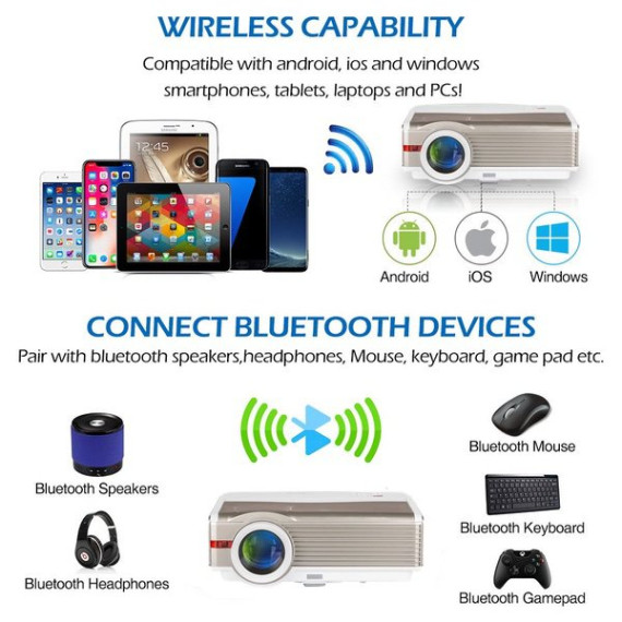 5000 Lumen WXGA Android LCD Smart HD Wireless Video Projector with Wifi Bluetooth,LED Home Theater Outdoor Movie Projector 1080P HDMI USB VGA AV Audio for iPhone iPad TV DVD XBOX PS4 Laptop Game