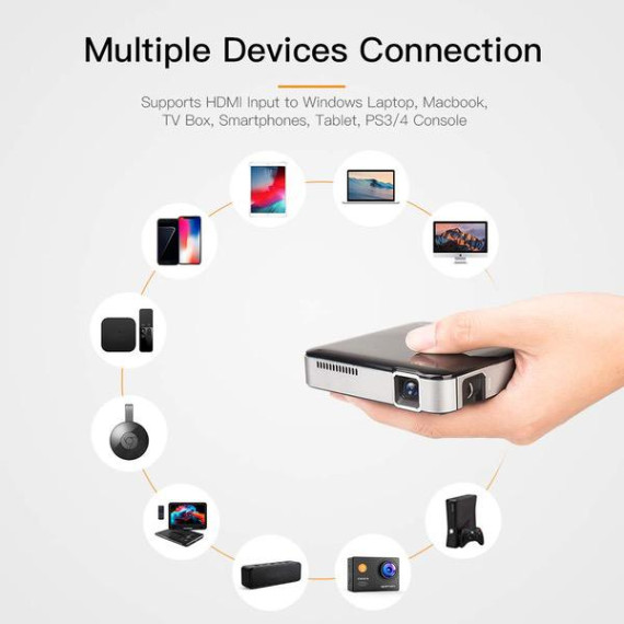 • EXTENSIVE CONNECTIVITY - This mini projector can widely connect to your laptop, TV Box, DVD, tablet, camera, PS3/4, smartphone and so on via HDMI port to enjoy a variety of entertaining resources from as many devices as you like, projected screen size of up to 100 inches. Turn your living room into a home theater for family and friends.
