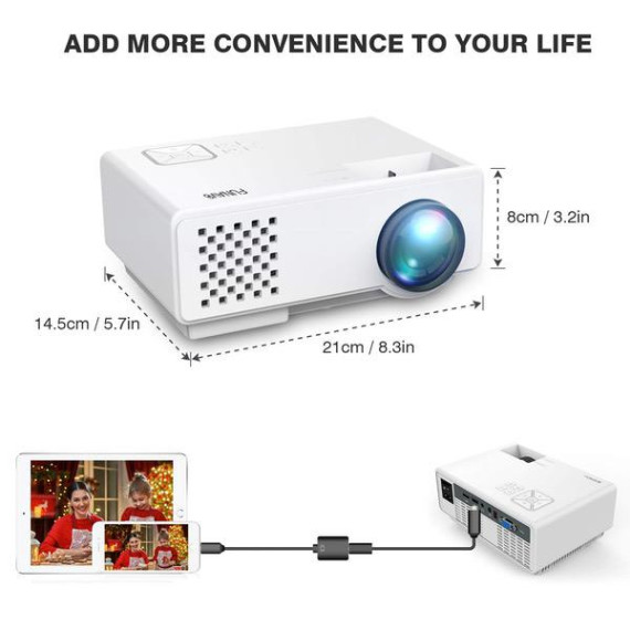 • Superior Home Theater Projector: video projector equipped with 2000:1 contrast ratio, supported 1080p resolution, screen size from 32’’ to 170’’. Portable projector provides you with a premium home cinema experience with the bigger screen and clearer image.