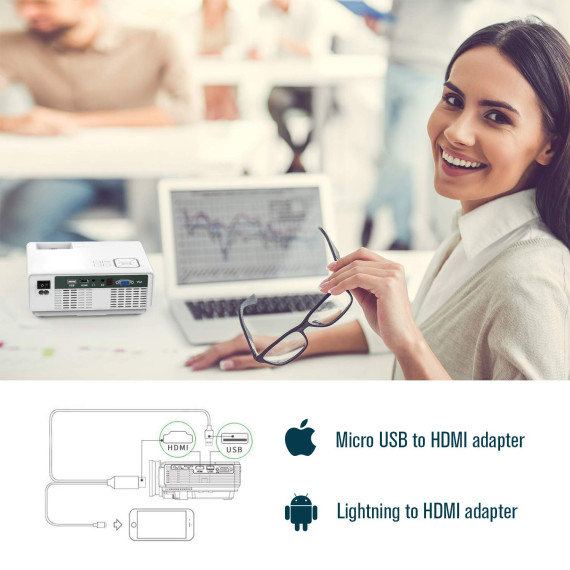 • Lower Fan Noise : iphone projectors are equipped with an innovative cooling system with heat dispersion, as well as a noise suppression technology which cuts fan sound in half.