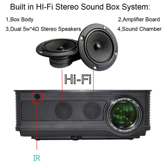 Make sure this fitsby entering your model number. 1.【High Bright LED Projector】:3800 lumens led light utilization efficiency., US Cree lamp, 5 layers high transparency lens make it much more bright than others. Native physical 1280*800 resolution support 1080p. Unique ACC image enhancement technology make picture rich in color show and more vivid. Dual channel image technology make image to original and high fidelity. Optical Sensing technology make bright and dark appropriate、prevented from distortion 2.【Built in Hi-Fi Stereo Sound Box System】: It include 1,Sound Box Body 2, Sound Chamber 3, Amplifier Board 4, Dual 5w x 4Ω Stereo Speakers.It is not just the common speakers as competitors'. It give out wide high pitch, accurate mediant , powerful low pitch. So you can hear the every details of sound and whispers in the videos 3.【Excellent Appearance Technology】:Wire drawing Brushed metal cover,more stylish luxury, in order to pursue a higher value for customers. We adopt 23 procedures in the whole surface treatment, strive to achieve excellence. 4.【Multiple Connections】: Interfaces-VGA / USB / HDMI / AV / 3.5mm Audio. Video led projector connect perfectly to PC / laptop / Set top box/ / DVD/ PS3/PS4/ Xbox/ via HDMI input; connect headphone/outer speaker via Audio port; connect U-disk/ hard disk device via USB port; Wifi display dongle or wireless HDMI adapter(not included) is required if you synchronize projector to a Ipad, Iphone ,other tablets or Android mobiles 5.【US Repair Center in + 3-Years Warranty】: Leading after-sale service, The repair center is in LA,United States offer 3 years warranty. For Technical support, feel free to tell us your problem or questions.We will reply in 24 hours