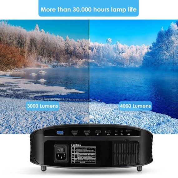 - ✔【 Your 4000 Lumens Home Projector】: GBTIGER YG610 HD projector utilizes updated LED Light source and advanced LCD display technology, brightness goes up to 4000 lumens, it will project clearer and sharper image than other ordinary projectors. With 1280 x 768 pixels native resolution, supports full hd 1080P videos. Built-in dual 3W Hifi Stereo speakers for your own home theater enjoyment. Contrast ration: 3000:1