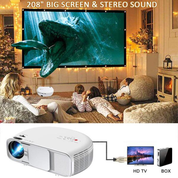 Make sure this fits by entering your model number. +85% UPGRADED BRIGHTNESS: After several years of unremitting R&D, the mini projector have 3600Lux 2000:1 contrast ratio delivers 85% brighter images than other similar projectors in market, providing you with crystal clear and vivid images in dark, enabling you to have fantastic visual enjoyment +80% UPGRADED INTENSIVELY SHARP IMAGES: Our projector is equipped with a 3.5 times brighter LED light and native 1280×800 pixels resolution screen,makes it possible for the 1080p full hd projector to deliver ultra excellent image quality which features corner-to-corner clarity and sharp edges. 208'' UPGRADED LARGE SCREEN FOR AMAZING VISUAL FEAST: The home portable projector has a 34''~208'' projection display size with a 3.77ft to 19.68ft projection distance. We recommend you to use a 98 inches screen with a projection distance of about 10ft, it’s definitely the best choice for your home theater entertainment. Multimedia interface: Built-in very loud speakers, AV / VGA / USB*2 / HDMI*2 interfaces to connect with PC / TV / DVD / SD card / USB disk / Xbox / Wii/ PS4 /Fire Stick.A Perfect Device for Parties, Home Cinema, TV Shows, Football Nights , Video Games, Church projection,Backyard Night Movies, KTV Karaoke, Outdoor Activities, Small-Room Meetings etc. Not recommend for PPT or office presentation purposes. Three Year 100% Satisfied Guarantee: Our Projector offer every customer a 100% satisfied guarantee and 3 year Money Back Guarantee. If there is any questions you met, you can contact us freely to get an immediate reply from our professional technical department.
