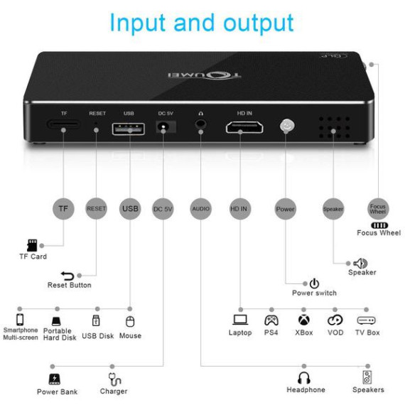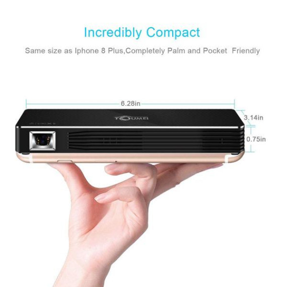 Make sure this fitsby entering your model number. 【As Small As iphone 8 Plus】Toumei 120 ANSI lumens projector which the size is 15.8cm*8cm*1.8cm and weight is 0.28kg. It adopt the most advanced technology:core art-optical technology and horizontal projection professional technology,and quad-care CPU,updated fan and cooling system is include 【Various Softwares Compatible 】This portable Android projector is the best gift for families and friends.Simple operation,such as PPT,Word,Excel,and Built-in Freeclick and Google Play App Store,which allows you to download and install apps,such as Kodi,Youtube,Hulu,Netflix, BBC,WWE,Sky TV, Foxnow and Office etc 【Automatic Vertical Keystone】Toumei portable projector has a automatic vertical keystone,which enables you to correct distorted images. The focus thumb wheel can be adjusted to get a clear picture 【True Wireless Projector】Unlike traditional HDMI projector, Toumei mini projector has embedded 4200mAh battery, which can work without charger. You can mirror your phone's screen with the projector by wifi or usb cable 【Warranty and Service】By taking advantages of the DLP technology, the life of OSRAM led bulb extends to 30000 hours. (If you use pico projector for 4 hours per day, that's almost 20 years!). Toumei supports 90-Days Money Back Guarantee and professional support service for lifetime