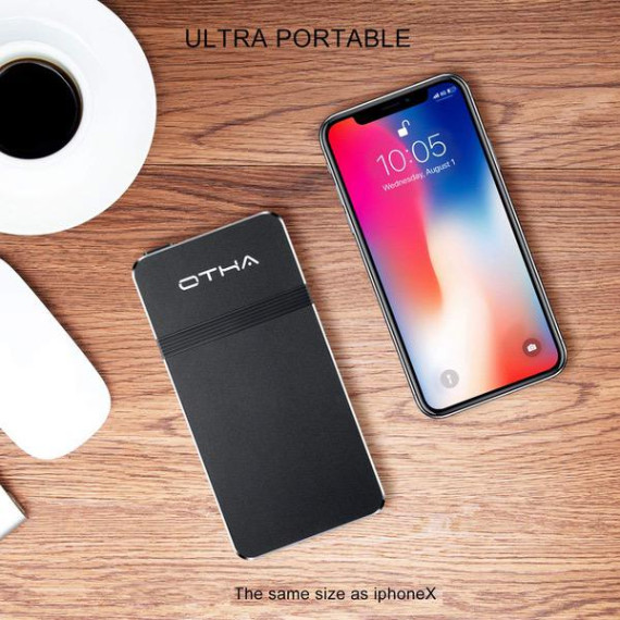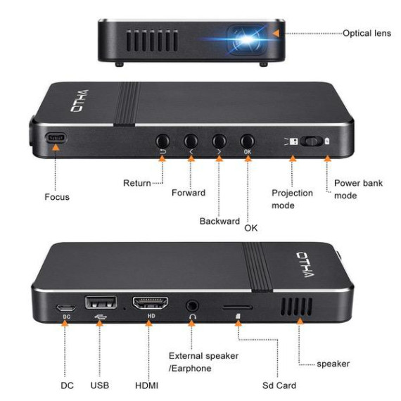 This is a VERY cool product. Not only is it a (normally sized) power bank, but a projector as well. I saw an Ivation Pro3 on display at an airport, and thought the idea of a mini projector was amazing (I am constantly on the road), so I bought it. But after fiddling with it for a couple hours and extensive online troubleshooting, it simply wasn’t compatible with iOS despite the claims on the box. So I returned it to the airport store before my layover was up. This OTHA model, on the other hand, is designed for the iPhone and immediately did screen mirroring just by plugging it in with your normal lightning cable. It is much more user friendly. I also liked that it uses a standard mini USB to charge like a lot of my other gadgets I bring on the road (Bluetooth speakers, ear buds, power bank...) You can buy dual mini-USB/lightning cords on amazon, and it’s nice to have all the same cables and not deal with proprietary plugs or bulky adapters. It’s an incredibly smart device, you can flip it upside down and the image corrects itself without having to fiddle with the settings. The auto keystone correction is impressive as well. The focus is very sensitive, it’s hard to get just right before it gets blurry again, especially when projecting close-up. And while it’s easier to focus when projecting farther away, it doesn’t do well in lighted rooms unless you’re very close up. It could be brighter. The speakers are impressively loud, good enough for casual use. If you need higher quality in a large room/big audience, there is a headphone jack to connect to better speakers via aux chord (or to use headphones as your lightning jack is occupied by the projector). I was also able to connect my phone to better speakers via Bluetooth while simultaneously Screen Mirroring on the projector (so while the OTHA projector doesn’t have Bluetooth functionality like the Ivation, it really doesn’t need it.) There are an impressive number of source input options (HDMI, SD card, plugging in your lightning cable, Apple AirPlay if on a home network). Unlike the Ivation, there is no web browser. I don’t think this is a big deal, as it keeps it smaller, simpler, and more user friendly. But that also means I was unable to use the hotel WiFi (many hotels now require you to fill out your room number and name, or agree to Terms of Use, before connecting you online.) I was still able to do an Over The Air firmware update by using a Personal Hotspot on the phone, but have been unable to try out the AirPlay so far. The image can be flipped for use with a rear projection screen. One of the main reasons I bought it was for an upcoming movie night on the beach with a rear projection screen, so we’ll see if it is bright enough for the job (might have to make sure it’s a new moon). Comes with a remote, but you can navigate all of the menus using just the four buttons on the side, though it takes a lot more button pushes (I didn’t have any AA batteries, and don’t plan on traveling with the remote.) It worked fine with the YouTube app, Screen Mirroring, iTunes music videos, and photos and videos on my camera roll. BUT... ...I gave it only two stars because it will not play movies purchased/rented on iTunes (the “TV” app). This is presumably THE main reason most people are buying the projector in the first place! I have an iPhone X, and got the same error message when trying to play my downloaded movies/tv shows both before AND after the most recent iPhone iOS update. I’m not returning it yet, as I’m hoping they will push a firmware update to fix the problem soon. I was completely unable to find their website or customer support (google search for OTHA only comes up with purchase options), but hopefully they will reply to this review. Two stars until it can do what I bought it to do, but I will update my review and rating if the issue can be fixed. This thing definitely has potential. It’s the perfect size (same size as the iPhone but twice as thick).