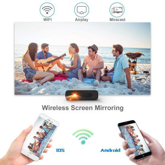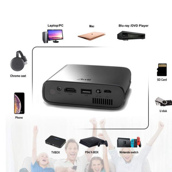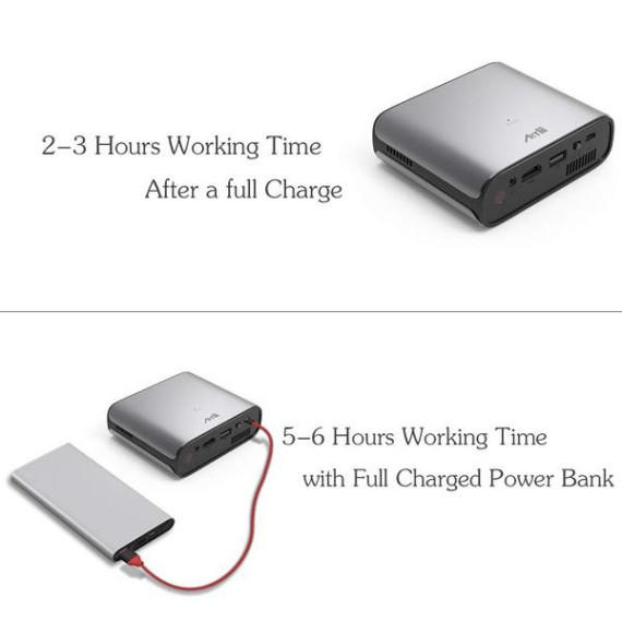 This is a review for the "Artlii Portable DLP Projector with 5200mAh Built-in Battery for Travel and Outdoor, Support 3D and Auto Keystone Correction, Compatible with iPhone and Smartphone." I recently received this projector, and it has been a pleasure to use! It is small and highly portable, with many connectivity options. It is delivered in an elegant package. It was very easy to set up and use right out of the box in about a minute. I am extremely impressed by the sharpness, clarity, vivid colors, and brightness, of the image. It feels like the native image resolution (854*480p per manufacturer) of this little projector is as sharp as, if not sharper than, other projectors that I have used that technically have a higher native resolution. This could be because of the “New DLP” technology advertised by the seller. Pros: Very clear image with vivid colors that is remarkably bright for the size of the projector. Extremely easy to set up and use. Very quiet operation. Less noise than experienced with larger projectors. Multiple connectivity options, including wireless, USB and HDMI. The remote, that is included in the package, activates many on-screen control options and is very easy to use. Using the supplied remote, you can set up and run an entire slideshow directly from a USB drive plugged into the USB port without need for a computer or iOS device (both of which could also be used if needed). The projector can be used while it is directly plugged in to the mains using the USB power supply that is provided in the package. Given the seemingly low power requirements, the projector can also be run using a portable power bank. The recommended projection size is ~90 inches at a distance of 7 feet. However, I felt that the image quality was superb at various distances that were smaller or slightly larger than the recommended distance. Therefore, I feel that it is likely to be easy for most users to have a good and clear image even with different projection conditions and configurations that one might need in different settings. I did some tests holding the projector at different angles and turning it upside down. The projector automatically senses orientation and applies keystone correction automatically too. If you turn it upside down, it immediately projects the image in the right orientation and keystone corrects it! It’s amazing how quickly and well this works. In addition to the power supply and remote that are included with the Artlii projector, the package also comes with a soft, velvet case in which the projector can be carried. Finally, the design uses a recessed lens (with a focus wheel on the side) which means that the lens is more protected from scratches etc. Cons: So far, there are no cons that I have observed. One aspect, that is not a con, is that the image is remarkably bright, but one needs to have realistic expectations. Given the small size of the projector, the brightness is not such that you could view a large image comfortably in a brightly lit room. To see the best image quality, you would do well to have a reasonably lit, or darkened room (I don’t think it needs to be completely dark). I hope that the projector works as well for others as it has been working so far for me. I am happy to try and answer questions if needed.