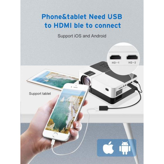 Mini Projector, Baililai 2800 Lumens LED Portable Projector 180 Inch Support 1080P HD, Video Projector for Home Theater Games and Outdoor (Compatible for PS4/Laptop/XBOX/SD/AV/USB)