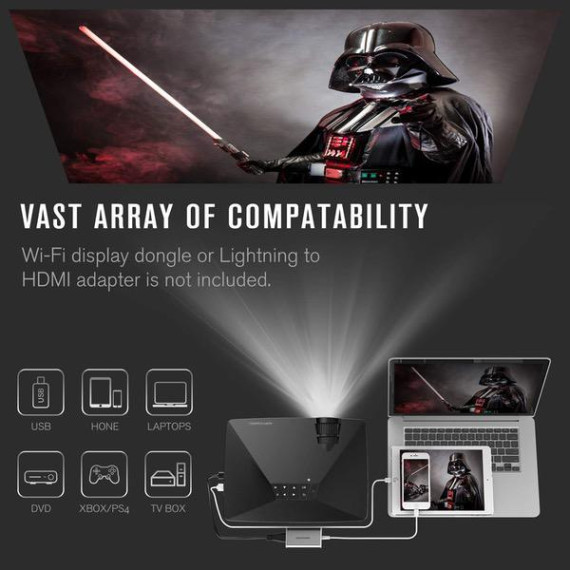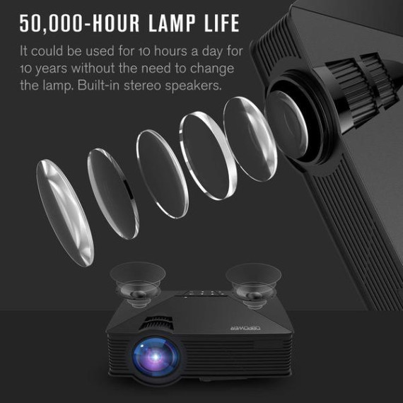 Mini Projector, DBPOWER GP15 +50% Brighter Portable LCD Mini Video Projectors,50000Hours Support 1080P HDMI USB SD Card VGA AV for Multimedia Home Cinema, Movie, TV, Laptops, Games, Smartphones, Black