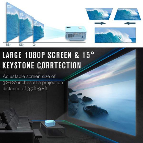 Make sure this fits by entering your model number. CRYSTAL CLEAR IMAGE QUALITY: DBPOWER GP15 projector is 50% brighter and sharper than other 1800 Lumens projectors, giving you superior, crystal clear images. If you’re looking for a home theater, then this projector is ideal for you. PLEASE NOTE: As this is a home entertainment projector only, we do not recommend it for PPTs or business presentations. ENJOY THE BIG SCREEN EXPERIENCE AT HOME: It may be small, but the DBPOWER GP15 projector has a projection display size of 32-120 inches and a 1-3m projection distance. Enjoy an awesome viewing experience right in the privacy of your own home. For optimum viewing, we recommend a projection distance of about 1.5m-2m. REDUCED FAN NOSISE: Thanks to continued improvements in development, the powerful cooling fan has a much reduced noise, which translates into less distraction for you when viewing movies or playing games. AN ARRAY OF MULTIMEDIA CONNECTIONS: Supports connections with PCs, laptops, games consoles, TF cards (max 32GB), USB drives, smartphones & tablets. Whether you're gaming, watching TV shows or movies, you will not be short of ways to do this. PLEASE NOTE: A Wi-Fi display dongle (not included) is required to connect the projector with smartphones and tablets. OUTSTANDING SUPPORT & #1 SERVICE: Backed by a 3-year warranty, you have nothing to lose by purchasing this projector. Professional customer service & technical support is available. If you have any problem or questions with your purchase, please contact us anytime!