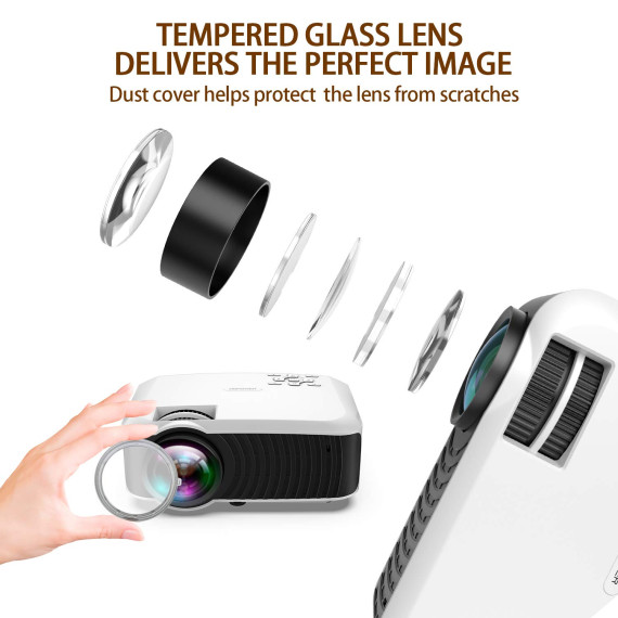 Make sure this fits by entering your model number. HIGH QUALITY IMAGE HD PROJECTOR AND 3D FUNCTION: With 2400 lumens and a contrast rate of 2000:1, this upgrade DBPOWER projector is 70% brighter and sharper than basic LED projectors. Moreover, it supports 3D function, making it ideal for home entertainment, watching movies, playing games, viewing photos etc. ADJUSTABLE PROJECTION SIZE: Projected screen size is from 30 to 176 inches with a projection distance of 1.1 to 5m. Suitable for use in both big and small rooms. IMPROVED NOISE-REDUCTION SYSTEM AND LONG LIFE LAMP: The DBPOWER T22 video projector is equipped with a reduced-noise fan which cuts fan noise by half. In addition, the advanced LED lamp could work at least for 50000 hours, twice time than same price level projectors. CONNECTING EASILY TO YOUR PHONE: With a HDMI dongle(not included), you could connect your smartphone (support MHL function)/ iPad to the projector, perfect and convenient for home entertainment. LEADING WARRANTY & SERVICE: A 3-YEAR warranty with professional customer service & technical support is supplied. Any questions, tell us by amazon messages. P.S: We do NOT recommended it for PPT or business presentations.
