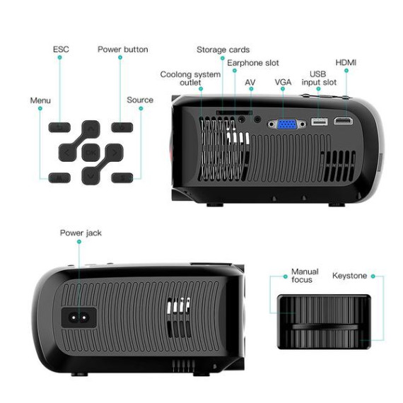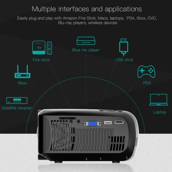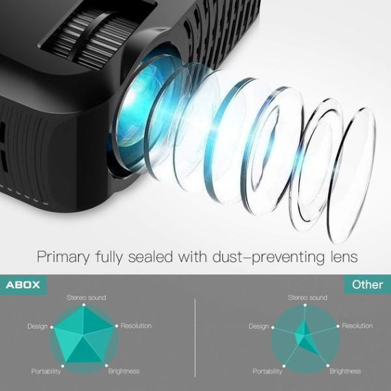 Home/Catalog/Television & Video/Projectors/Projector, ABOX A2 LED Movie Video Projector with Full HD Native 720p, 100 ANSI Lumen, 180" Big Screen, Hifi Speaker, Support 1080p with HDMI/USB/SD Card/VGA/AV Ports For Home Theater/Laptop/TV/Phones