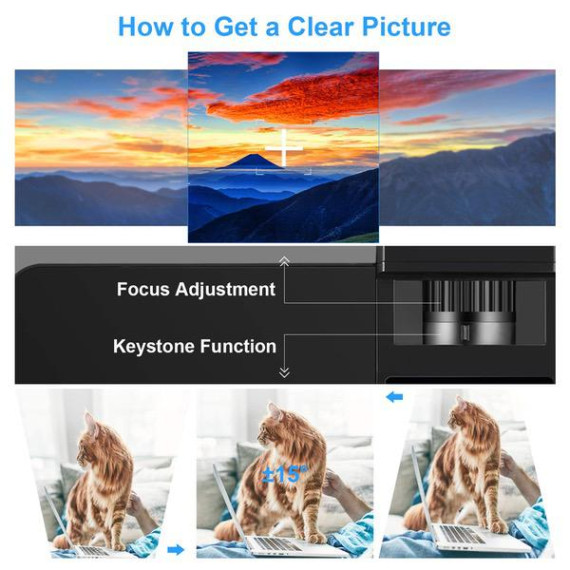- 【 Enjoy Big Screen Home Theater 】: Projection size: 30-200 inches with projection distance 3.3ft - 19.7ft(1-6m), the shortest distance to focus is 3.3ft, and the optimal projection distance is 7.2ft, which will give you the best watching experience. The +/- 15 keystone correction function will ensure you get a clear display.