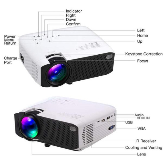 - 【Build-in stereo surround speakers】The projector is equipped with a newly released speaker system to make the sound 50% louder than traditional ones, meaning no external speaker is needed in normal sized rooms.