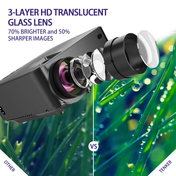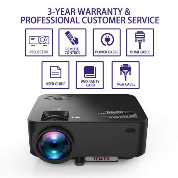 Make sure this fits by entering your model number. UPGRADED WITH 70% BRIGHTER IMAGES: The TENKER T20+ video projector takes the latest in LED technology and brings you high definition display images. A contrast ratio of 2000:1 and native resolution of 800*480, supporting resolutions up to 1080p, make this ideal for home entertainment in dark. NOT RECOMMEND for PPT or business presentations. ADJUSTABLE PROJECTION SIZE: This portable projector displays images between 32 - 176 inches, with a projection distance of 1-5.2m. For optimum viewing, placing the projector at a distance of 1.8 to 2.0m, while adjusting the focus and keystone correction, will achieve a super-clear and bright projection. MULTIMEDIA VIDEO PROJECTOR: This projector is compatible with TV Box, Amazon Fire TV Stick, PCs, Laptops, Tablets, Speakers, Chrome Book, Blue-ray DVD players, SD Cards, USB Flash Drives, Media players, iPads, iPhones and Android Smartphones . NOTE: When connected with smartphones, a Wi-Fi display dongle or HDMI adapter (not included) is required. UPDATED COOLING SYSTEM: Thanks to continued improvements in development, this 4.0" LCD projector adopts pure copper tube cooling technology and the turbo fan is more powerful yet quieter. This translates into less distraction for you when viewing movies or playing games. AFTER-SALES SERVICE: Backed by a 3-year warranty, you have nothing to lose by purchasing this projector. Professional customer service & technical support is available. If you have any problem or questions with your purchase, please feel free to contact us anytime!