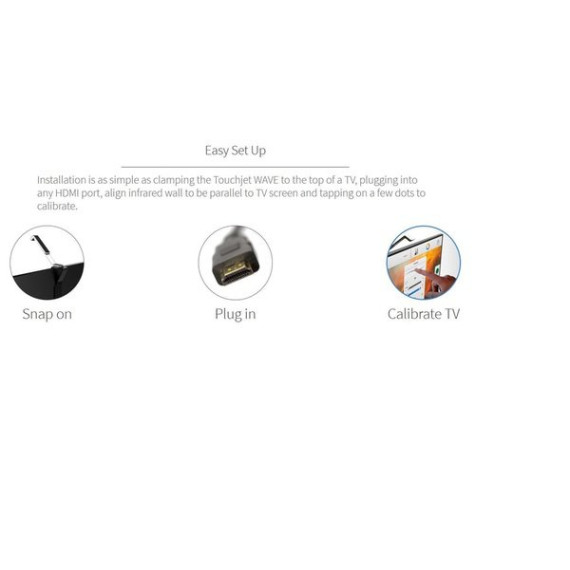 Make sure this fitsby entering your model number. Please refer to the user manual for setup instructions. If there are issues, please contact Touchjet Customer Service at 415-579-3399 for assistance. Virtual Touchscreen - Touchjet WAVE adds a virtual touchscreen onto flat screen TVs and display monitors up to 65" (smart TV is not required). Simple Connection - Simply attach the WAVE to the top of your TV and plug the WAVE into your TV via . Giant Tablet - The WAVE is preloaded with the Android OS, Wi-Fi and it comes preloaded with apps so that you can start enjoying right out of the box. Work View / Class Time - Flip through your presentation directly on the big screen just like John King on cnn. Streaming - Stream your favorite shows and movies on Netflix or your favorite streaming app without having to connect to other devices. Support - Please download the Touchjet App onto your smart device (iOS and Android) for step-by-step instructions. Connect, Collaborate, and Share - With WAVE, bring presentation and education apps, and connect individual tablets to the big touchscreen. An affordable alternative to IWB and giant tablets.