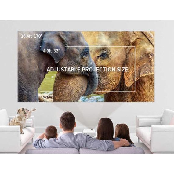 • BIG SCREEN SIZE EXPERIENCE: It provides a watching size from 32” to 176” with the projection distance between 4.9ft to 16.4ft. A projection distance of about 6.5 ft is the recommended viewing distance.