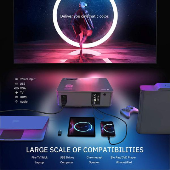 VIVIMAGE Cinemoon 580 Projector1080P Supported, 4000 Lux High Brightness Video Projector with 200" Projection Size Includes HDMI Cable