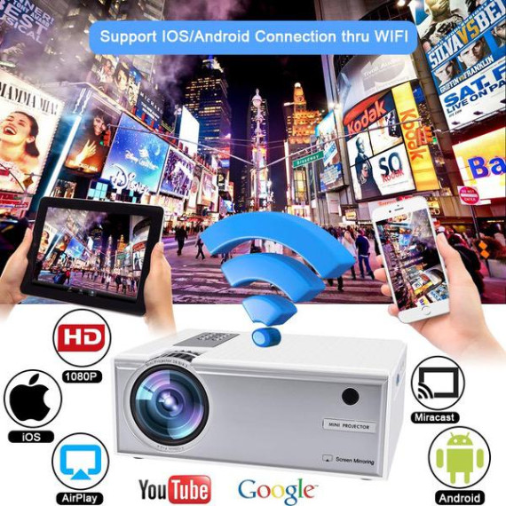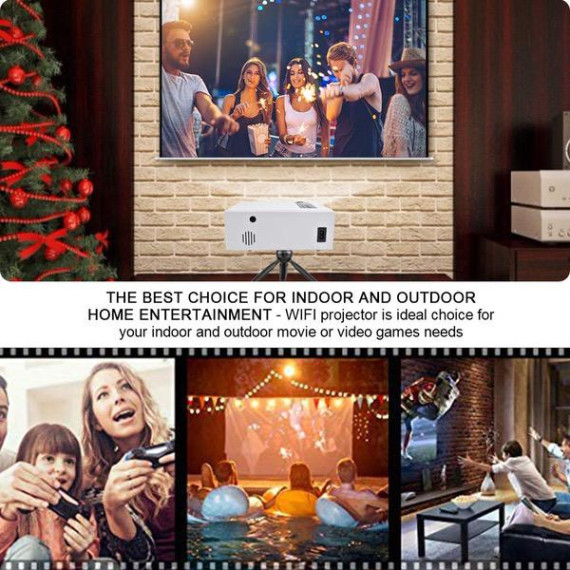 - 【MULTIMEDIA PORTABLE PROJECTOR】 - This portable projector is built in a variety of inputs interface, such as USB VGA and AV HDMI headphone jack. Apart from Wifi, Multimedia Portable Projector is compatible with smartphones (Android or iOS), TV Box, Amazon Fire TV Stick, Chromecast, PCs, Laptops, Tablets, Blue-ray DVD player, USB Flash Drive, Media players (Music, Pictures, Video, TXT), iPad, Game console such as PS4, X-Box ONE or Wii to enjoy BIG games.
