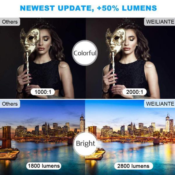 - 【Excellent Picture Quality】 - WEILIANTE video home projectors are equipped with a leading cooling system with awesome heat dispersion, which cut 50% noise, largely upgraded the Stability and Durability. The LED lamp life was extended to 50,000 hours. It will provide you with more quiet and comfortable home theater environment when enjoy your Family Prime Time.