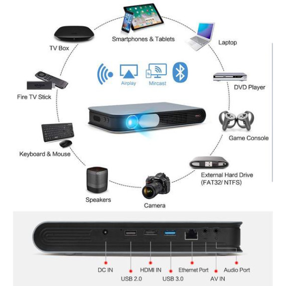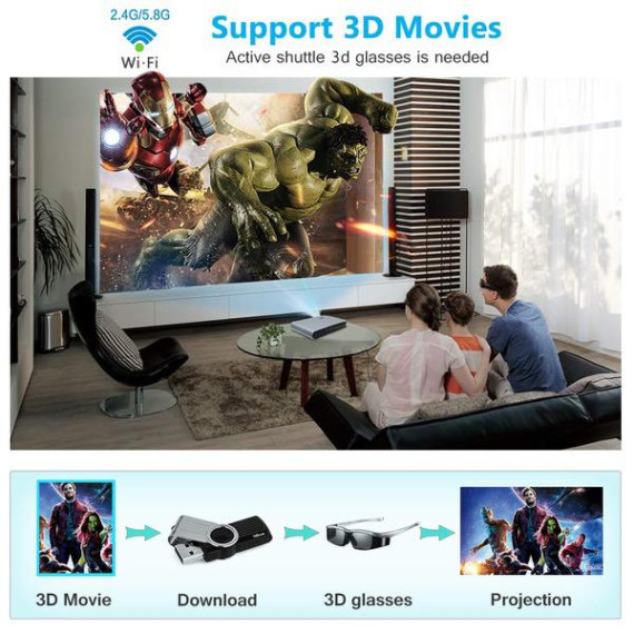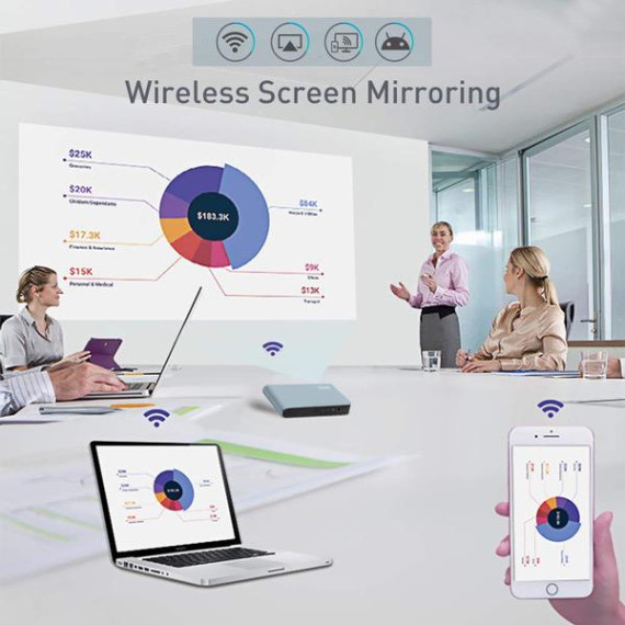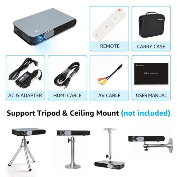 WOWOTO CAN Projector 3500 Lumens 3D DLP Support Full HD 1080P 300in with WiFi Bluetooth AirPlay HDMI Android OS Mini Projector for Home and Office