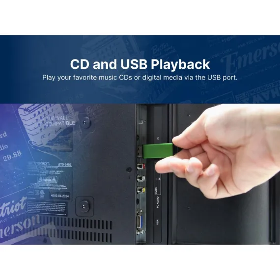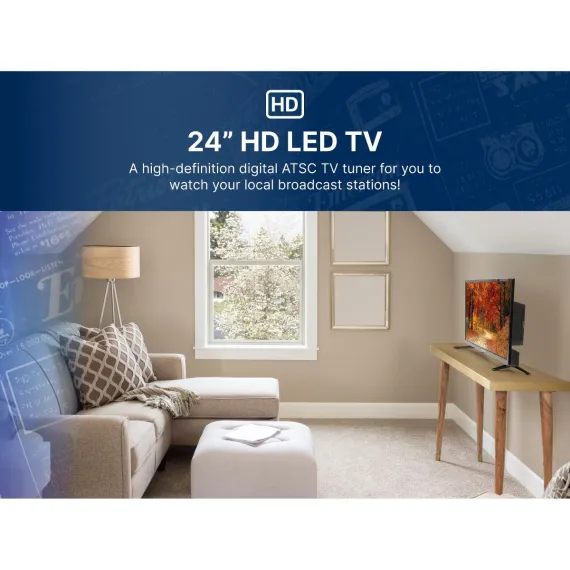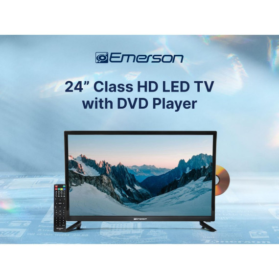 The Emerson™ 24-inch Class HD LED TV with DVD Player is a versatile TV that can be used at home or on the go while traveling in your RV or truck. Enjoy crystal-clear picture quality and a user-friendly interface. Watch your favorite movies and TV shows anywhere, anytime. With a built-in digital ATSC TV tuner, you can watch all your favorite local broadcast channels without an external device. Display on a tabletop using the included stand or mount to the wall.