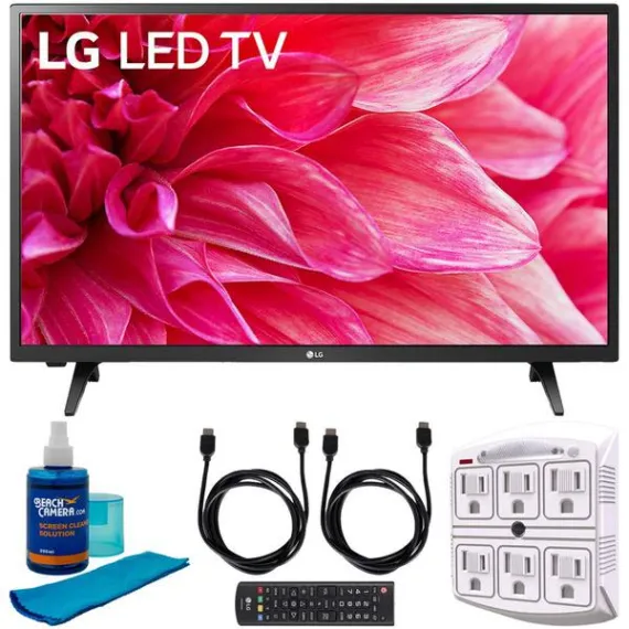 LG 32LM500BPUA 32" LED HD 720p TV (2019) w/Accessories Bundle Includes, 2X 6ft High Speed HDMI Cable, SurgePro 6-Outlet Surge Adapter w/Night Light and Universal Screen Cleaner