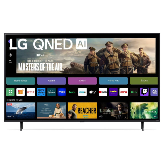 LG QNED80 combines cutting-edge Quantum Dots with LG's NanoCell technology to create uniquely bright, colorful images. The AI-powered LG QNED80 has a super-fast native 120Hz refresh rate, so you see smoother action; plus, Dimming Pro dynamically adjusts the back lights to maintain deep black levels, allowing you to be fully immersed in your content. You'll enjoy outstanding picture powered by the α8 AI Processor, which uses AI to detect what you're watching and automatically improves the picture and sound quality. You'll also experience less searching and more streaming, thanks to the next generation of AI technology from LG webOS 24. With Quick Cards, group your favorite apps into categories and use the Magic Remote to easily find what you're looking for—like instant access to over 300 free channels with LG Channels.* Every moment will be enhanced with virtual 5.1 surround sound for an immersive home theater experience. And transport yourself to the center of superhero-sized action and galaxies far, far away with FILMMAKER MODE™ that allows you to see films just as the directors intended. For gamers, you'll experience real-time action with virtually no tearing from FreeSync™, VRR and GeForce NOW for cloud gaming.** Plus, the LG Game Optimizer, Game Dashboard and two HDMI 2.1 ports get you (and keep you) in the action.