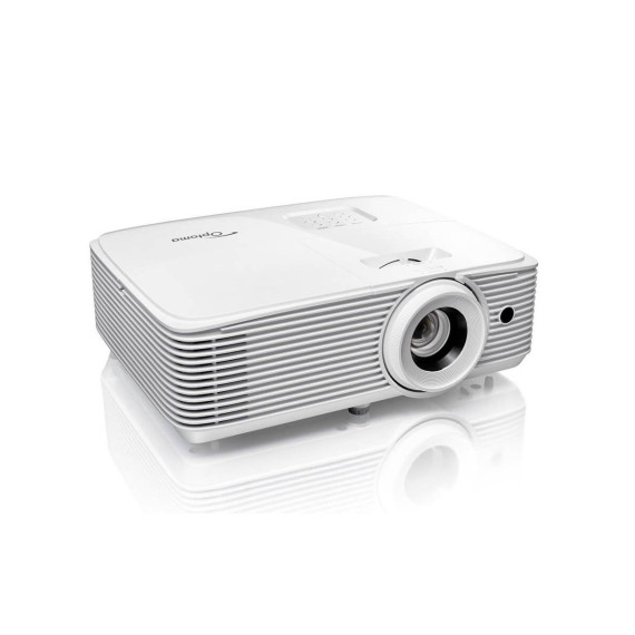 For ultimate convenience this projector boasts multiple inputs including 2x HDMI, making it ideal for use with a HDMI dongle for connection to a laptop, PC or Blu-ray player. This compact model can either be installed or taken on the move. Lights on viewing This all-round home entertainment projector combines high brightness and vivid colors for vibrant, true-to-life visuals in well-lit environments - ideal for watching TV shows, sports and movies or gaming with family or friends any time of day. Amazing color Watch your movies, TV shows and play games with stunning colors in any environment. Optoma projectors provide reliable performance suitable for any content and environment. Our home projectors are capable of reproducing the Rec.709 color gamut, the international HDTV standard to guarantee accurate reproduction of cinematic color exactly as the director intended. Or more saturated colors for a punchy looking image, great for gaming and animated movies. Full HD 1080p 1080p resolution gives you sharp and detailed images from HD content without downscaling or compression; perfect for watching Blu-ray movies, HD broadcasting and playing video games. Superior contrast Add more depth to your image with a high contrast projector. Compared to competing technology, Optoma DLP projectors provide you with brighter whites and ultra-rich blacks, images come alive and text appears crisp and clear - ideal for business and education applications. Full 3D Display true 3D content from almost any 3D source, including 3D Blu-ray players, 3D broadcasting and the latest generation games consoles. Integrated speaker A built-in speaker offers excellent audio support and an easy setup without the need for costly external speakers USB-Power Use the USB-A port to power external devices (5V/1.5A) Auto power off There may be instances when the projector is left running when not in use. To help save energy, the auto power off feature automatically turns off the projector after a set period of time if it is not being used 24/7 operation Optoma projectors have been designed to operate 24 hours a day in standard orientation. Perfect for applications where prolonged periods of use is required. Subject to 24 hour terms and conditions..