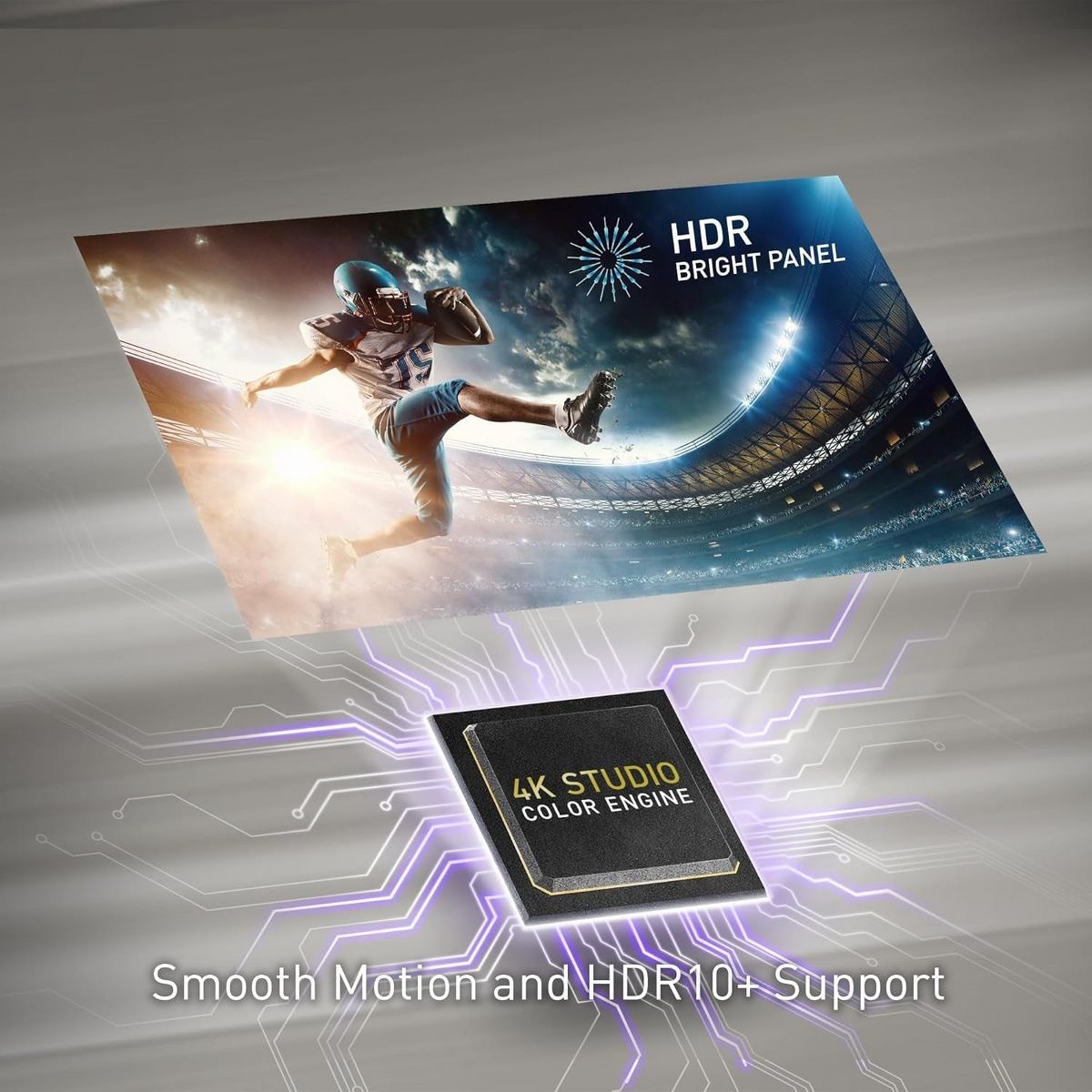 Equipped with four HDMI ports (including HDMI 2.1), plus Bluetooth and Ethernet support for seamless integration with gaming consoles, soundbars, and smart devices.