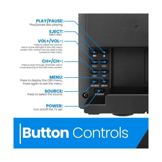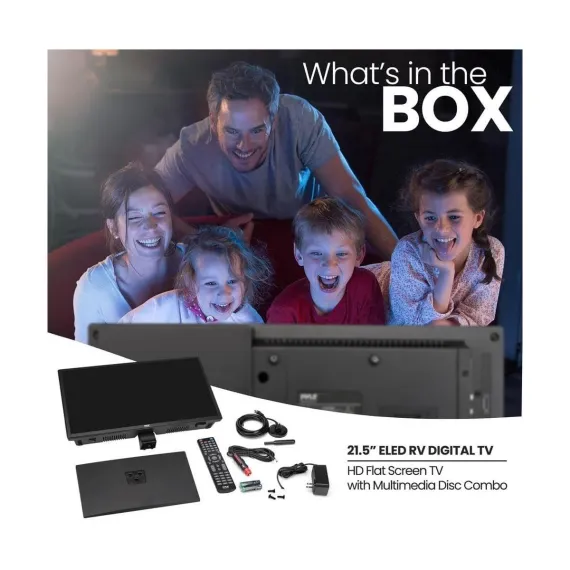 Pyle 21.5'' ELED RV Digital TV - Full HD Flat Screen TV with Built-in DVD Player, Digital Antenna, and 12V/24V Car Adapter - PLTLD22