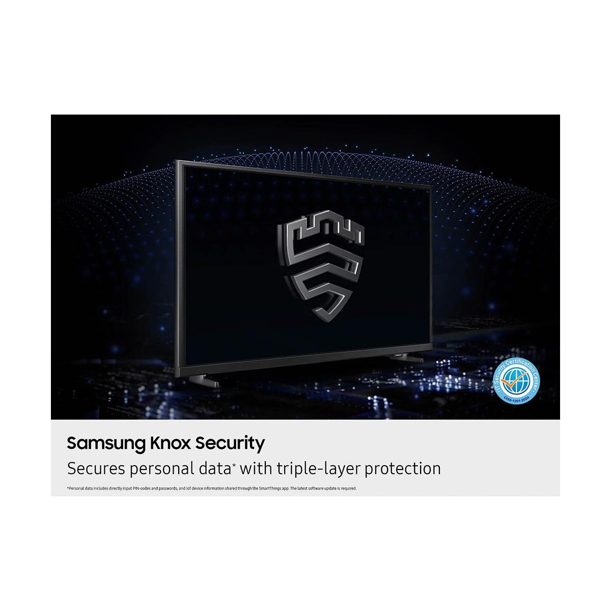 Your TV experiences are secured. Samsung Knox Security protects you from harmful attacks by automatically blocking unauthorized apps and phishing websites. It also safeguards your IoT devices connected to your TV, plus your sensitive information, including your PIN codes and passwords. With regular updates, your TV is always kept safe.